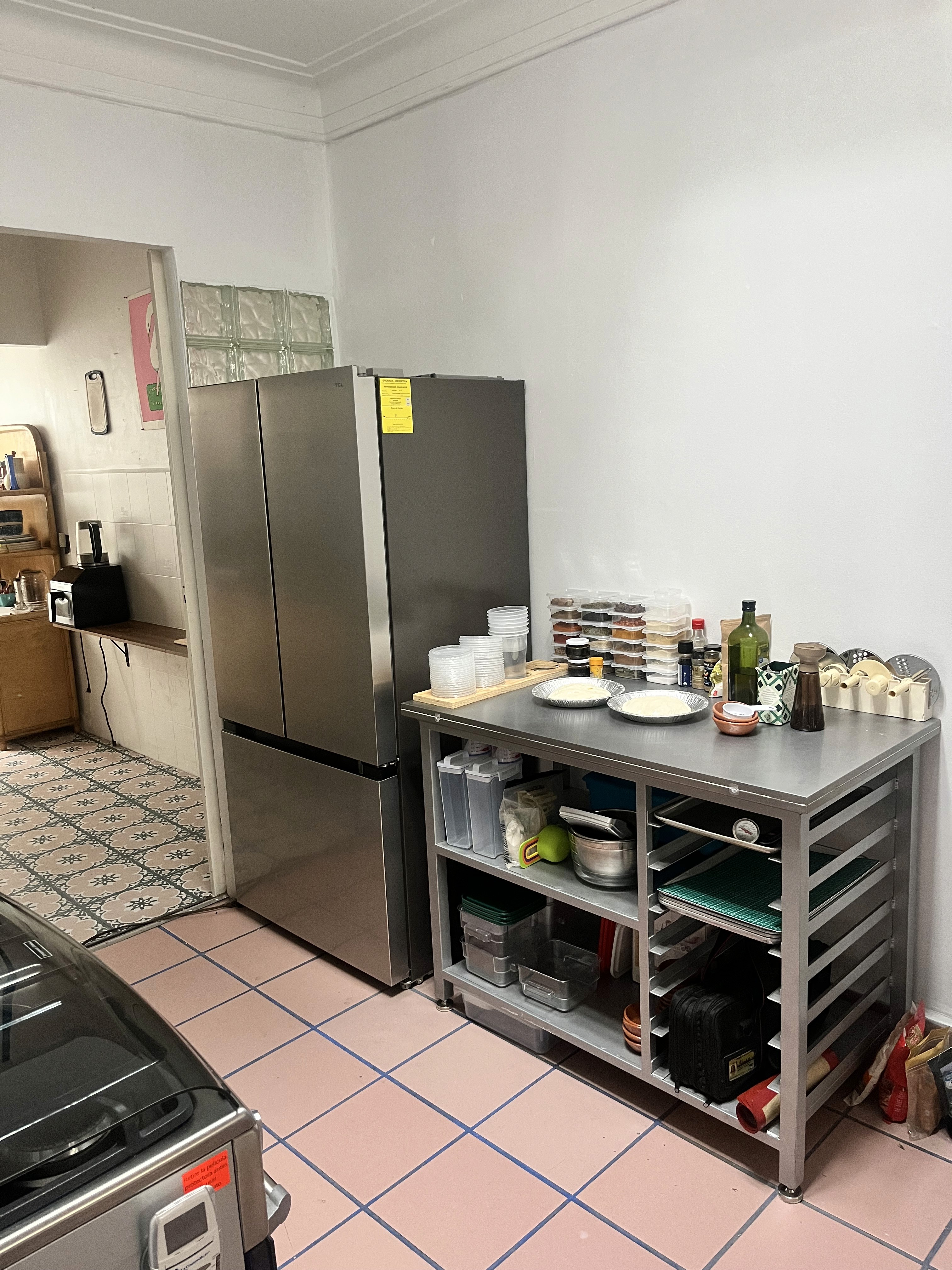 Descripción: Cocina Laboratorio profesional montada y equipada al 100%, con mesa de trabajo, horno, estufa, tarja y refrigerador doble con congelador.