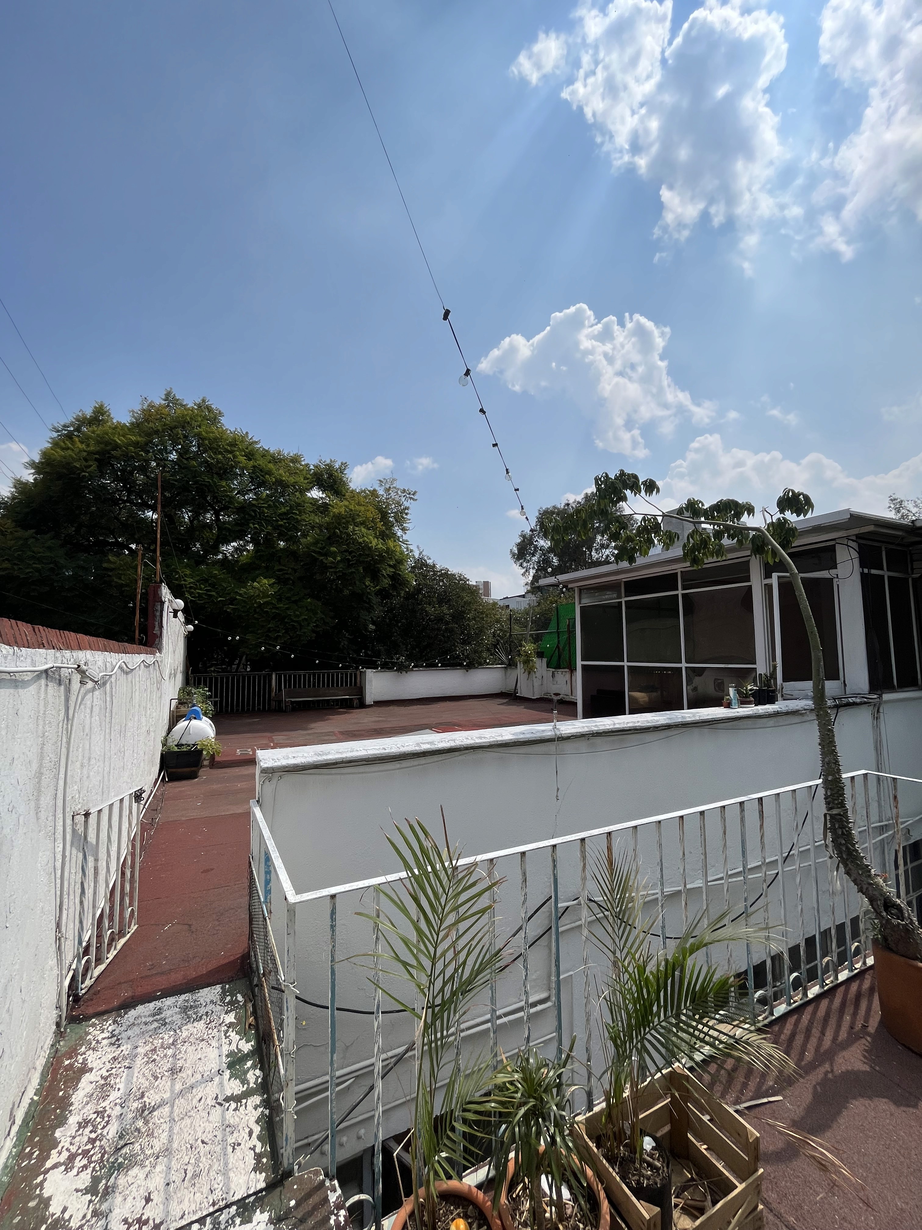 Descripción: Amplia azotea con capacidad de hasta 100 personas, vista a icónicos edificios, arboles y mucho sol. + Huerto en crecimiento.